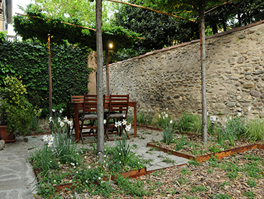 La grazia di Adele ha fatto sbocciare narcisi in inverno e margheritine ai piedi di una tettoia di carpini in primavera. Col profumo del rosmarino e della lavanda nelle aiuole possiamo immaginare di essere nella quiete della campagna. Grazie Adele.