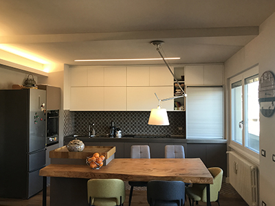 Realizzazioni semplici ma mai scontate (p.e. dispensa creata ad hoc in cucina) si sono poi dimostrate di grande utilità e praticità.
