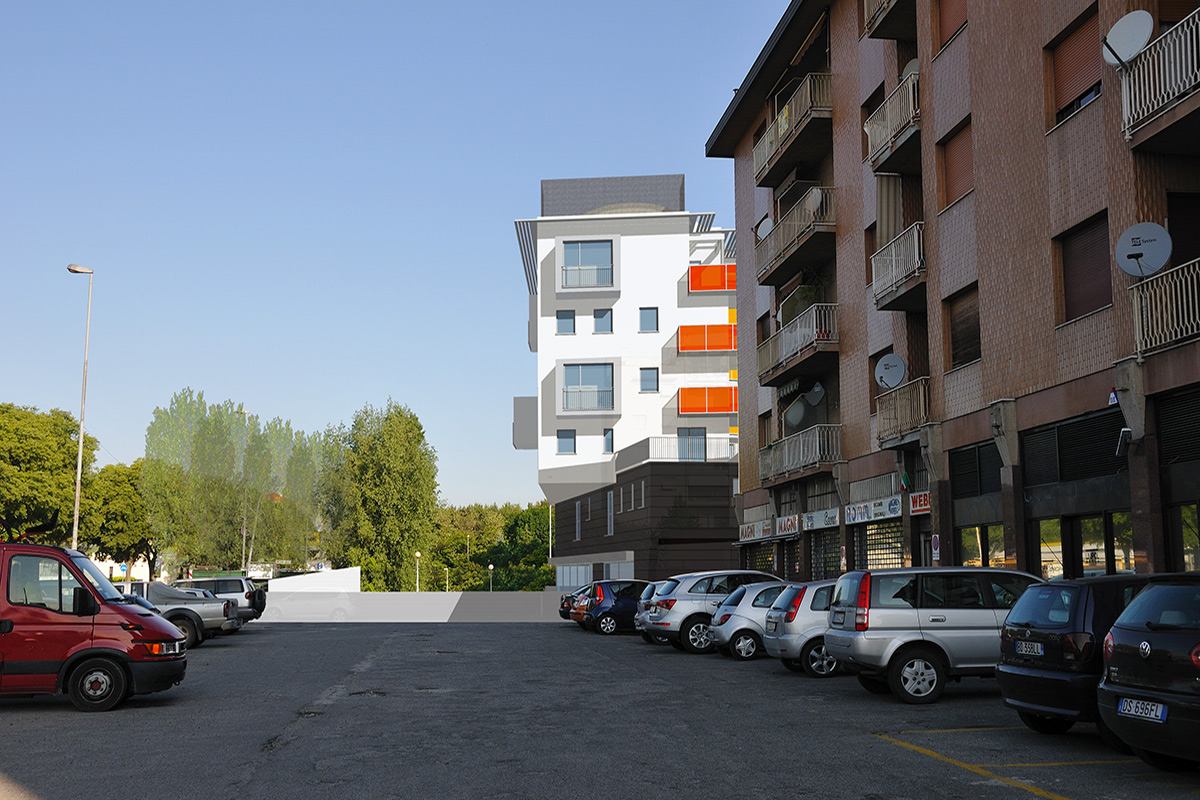 La rotazione dei volumi, l’essenzialità formale e i giochi di colore divengono gli elementi caratterizzanti del design sofisticato studiato per questo edificio.