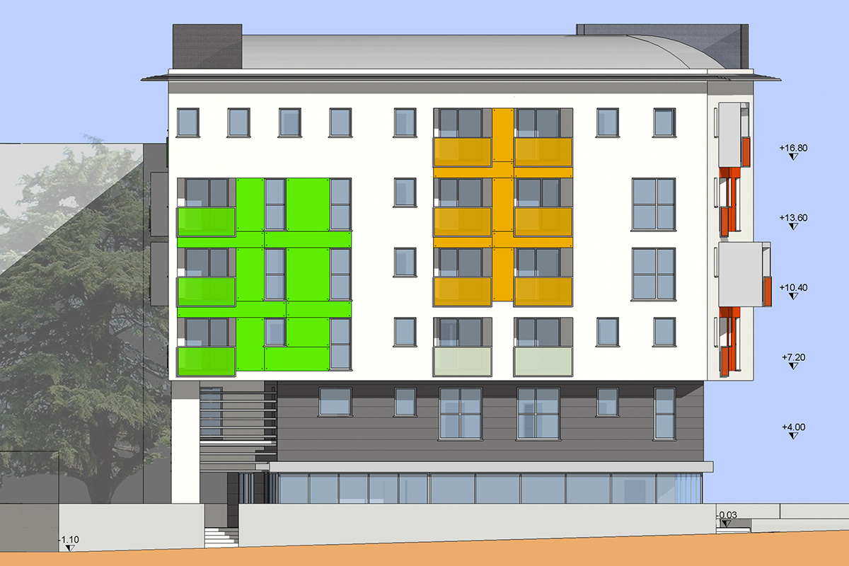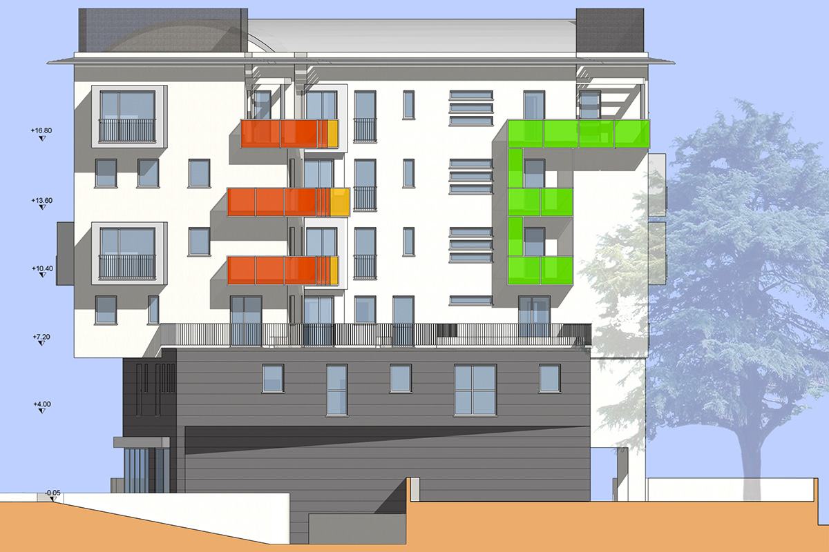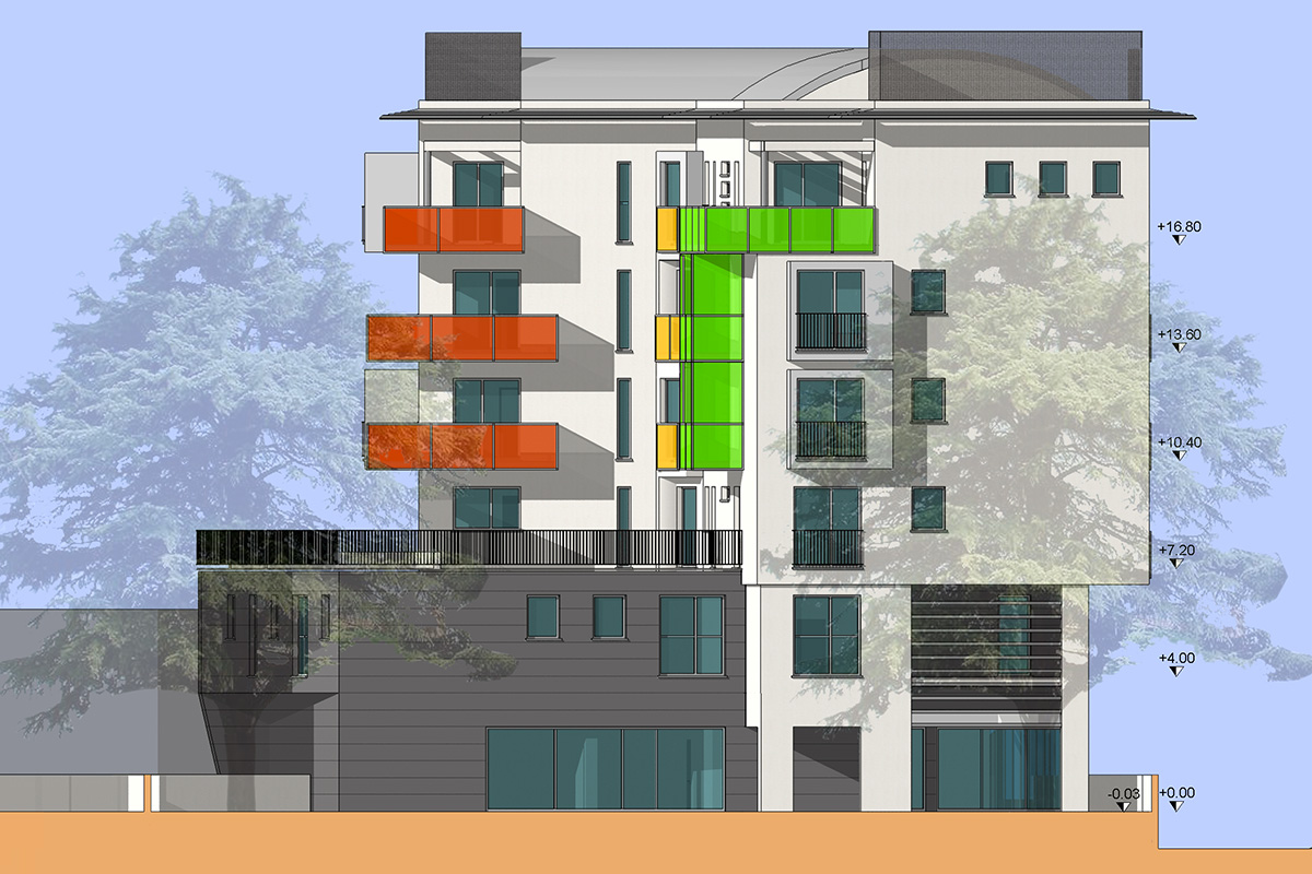 Gli appartamenti, attentamente modulati in taglio, dimensioni ed esposizione, sono dotati di balconi e di profonde logge caratterizzate da pannelli colorati in vetro autopulente.