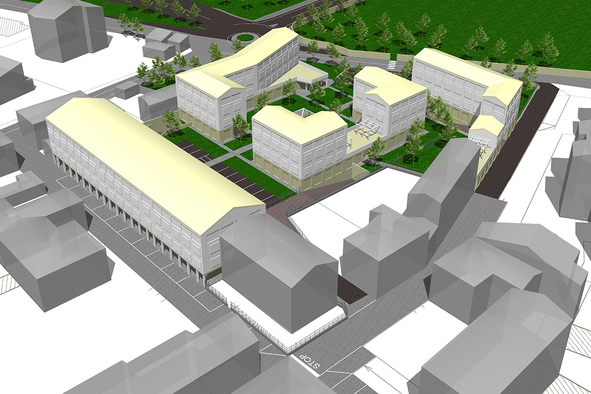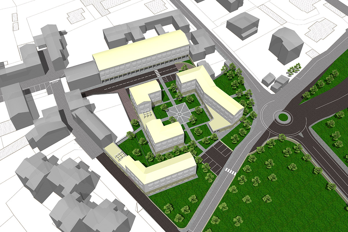L’intera area viene riprogettata con un ampio spazio centrale adibito a verde attrezzato, punto di riferimento per tutto il quartiere. Anche i percorsi vengono valorizzati sia verso il centro storico che verso il parco. Una trasformazione urbanistica di alto profilo che garantisce armonia e qualità ambientale.